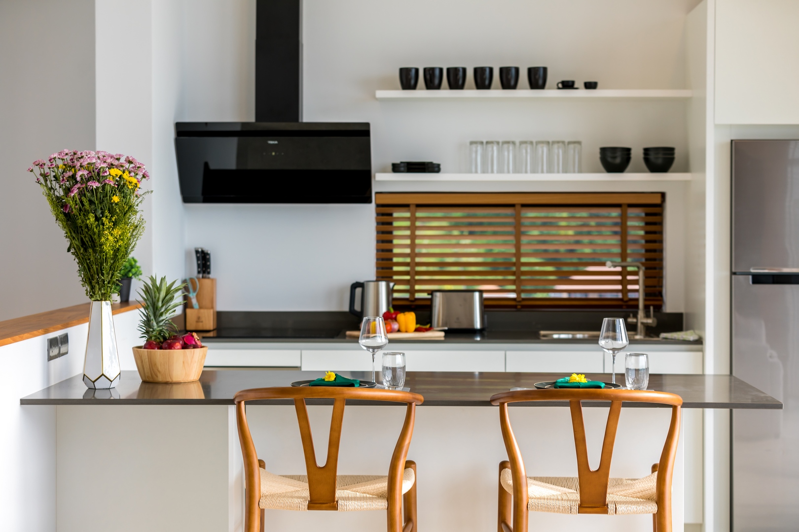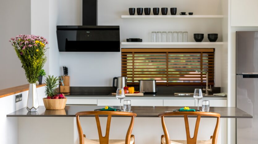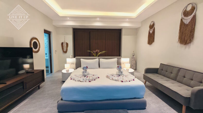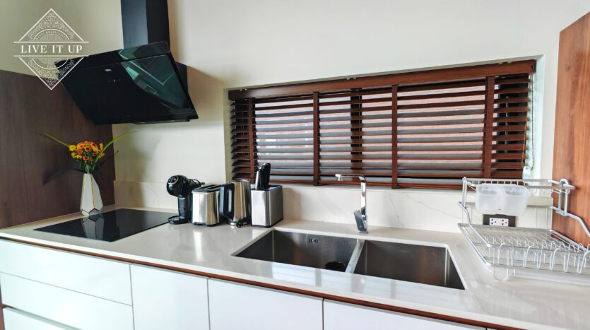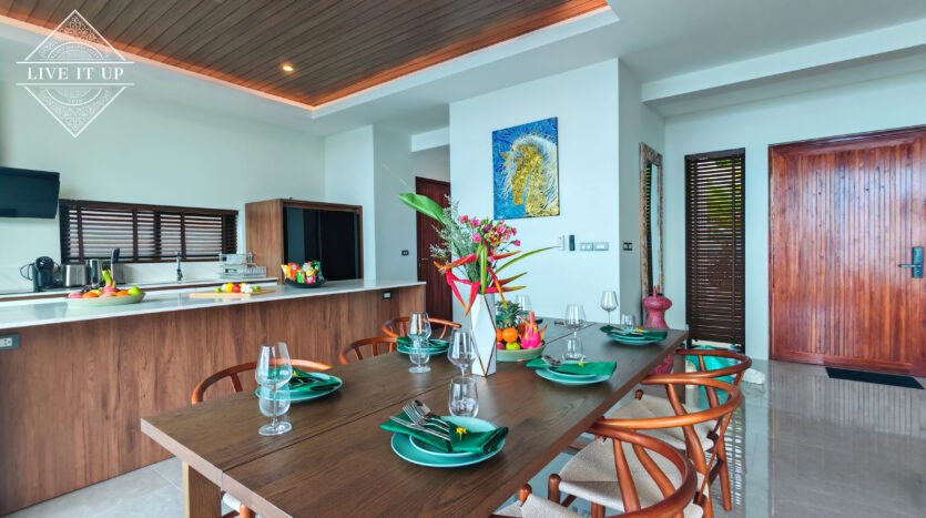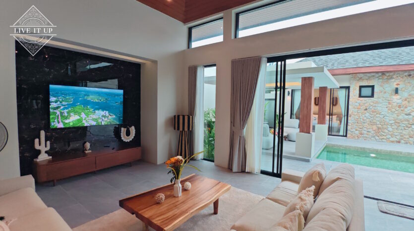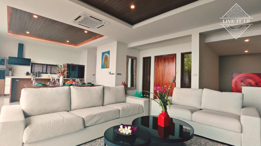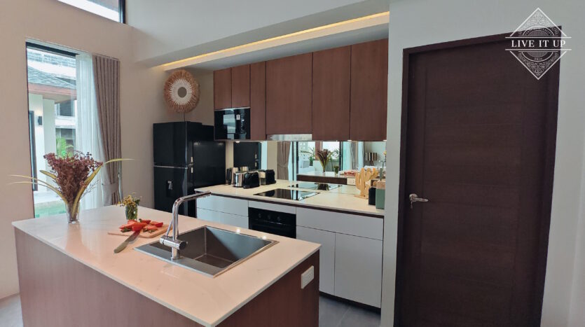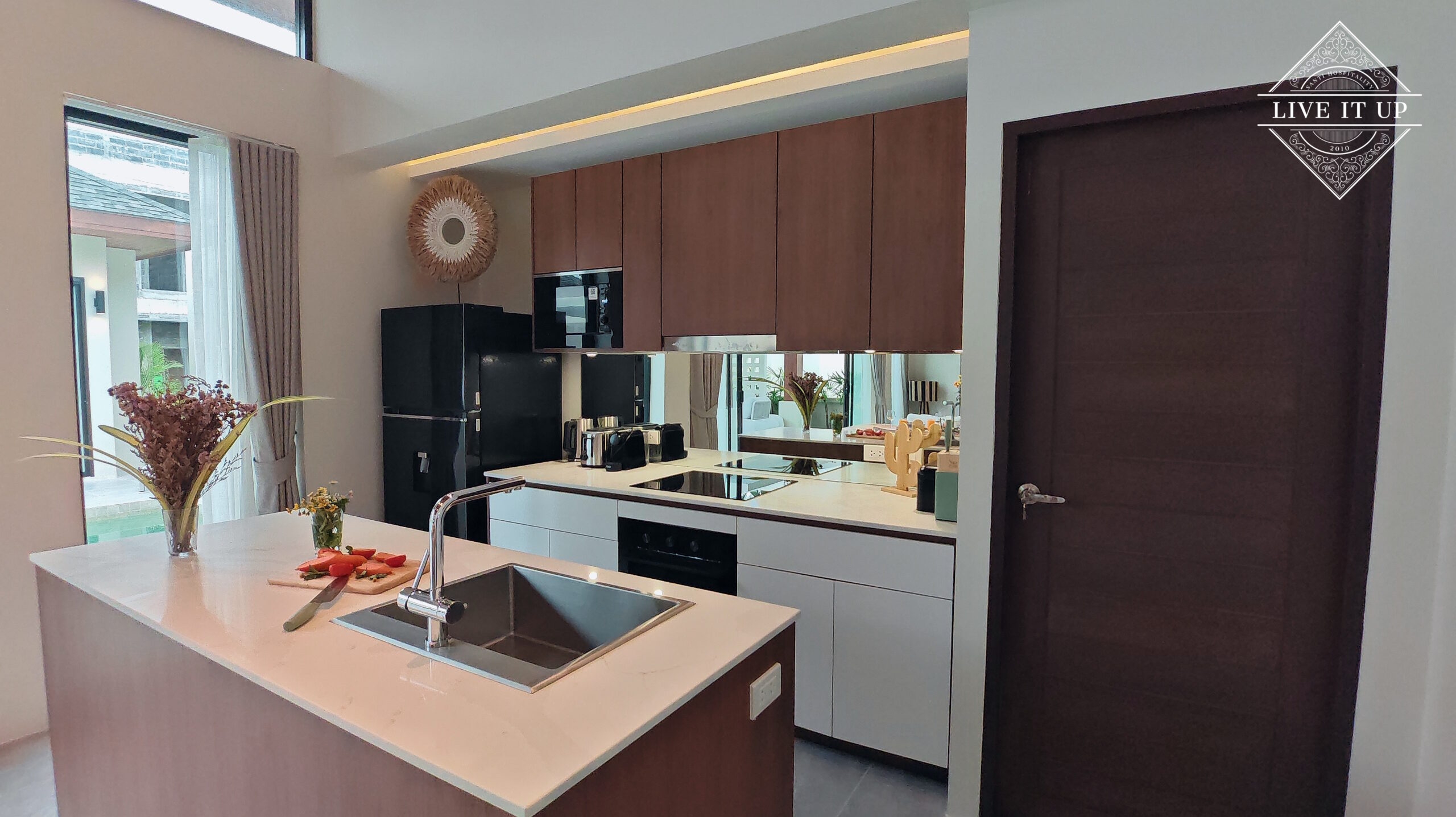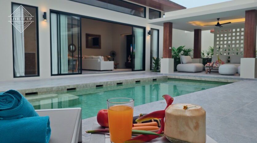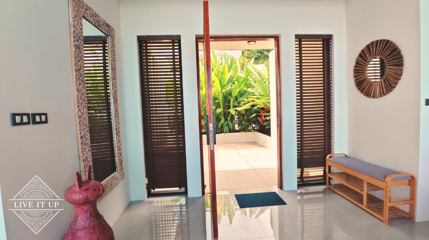 V ceně domu je i veškerý nábytek včetně zařízení – plně vybavená kuchyně, vestavěné skříně v ložnicích, vybavené koupelny, sofa, stůl, televize, záclony apod.. Postaveni vily trvá 9 měsíců po zaplacení zálohy.